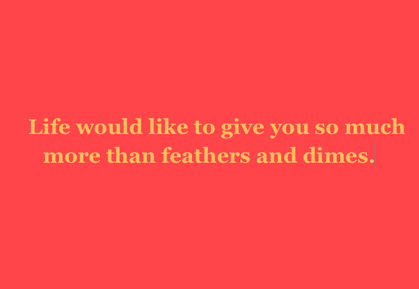 Life would like to give you so much more than feathers and dimes. Look for those signs now. Look for opportunities, invitations. Look for all the ways life offers itself to you. Keep your eyes on any thread and that's what you'll find.
